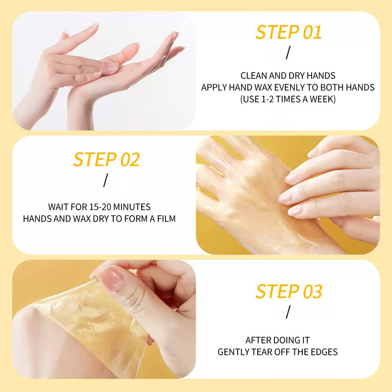 - ضع طبقة سميكة ومتساوية من شمع اليد بالعسل على كلتا اليدين.