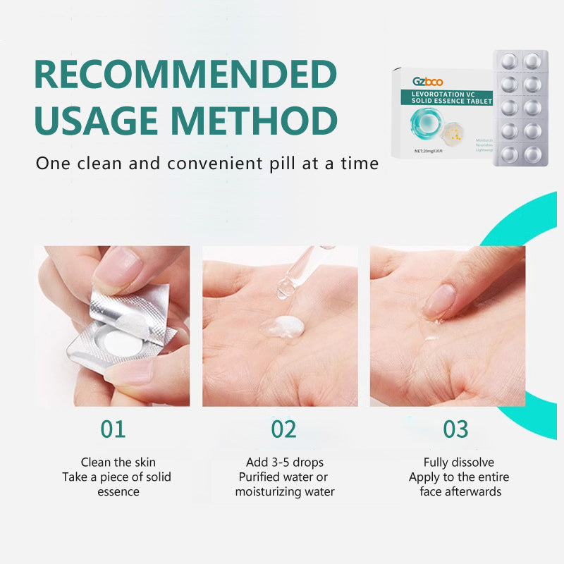 Cukup larutkan 1–2ml air murni pada tablet VC beku kering di telapak tangan Anda, gosok perlahan untuk menciptakan tekstur seperti serum, dan aplikasikan merata ke wajah. Vitamin C yang diaktifkan menembus dalam, mencerahkan warna kulit, mengurangi pigmentasi, dan meningkatkan produksi kolagen.